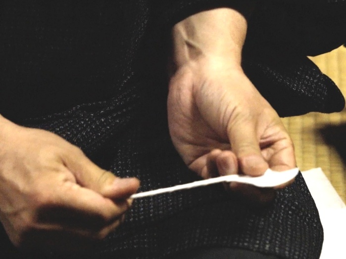 懐紙を短冊状に切り、観世縒りで紙縒りを作り、蝋カスが入った小鍋を囲炉裏の五徳に載せて溶かし、紙縒りに浸み込ませて作った。 行灯のあかりだけで行う予定であったが、一度電灯のあかりを点けた事で、再び行灯のあかりに戻す事が億劫となった。