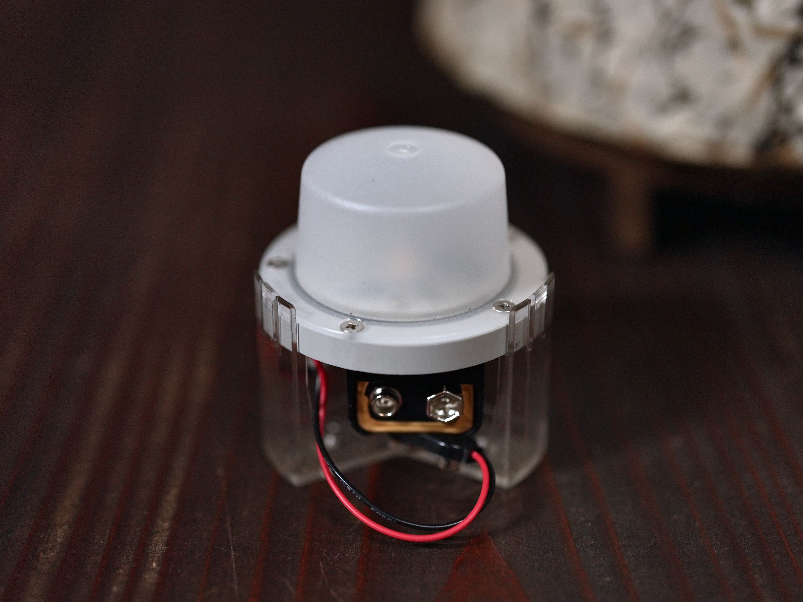 持ち歩く提灯などは、落とすと直ぐに火袋に燃え移る為、屋内での使用は難しく、土間や屋外での利用とし、更にはたんころやLED光源などの代替光源を使用する事が望ましいが、今回は特注のLED光源(図5)を利用した。