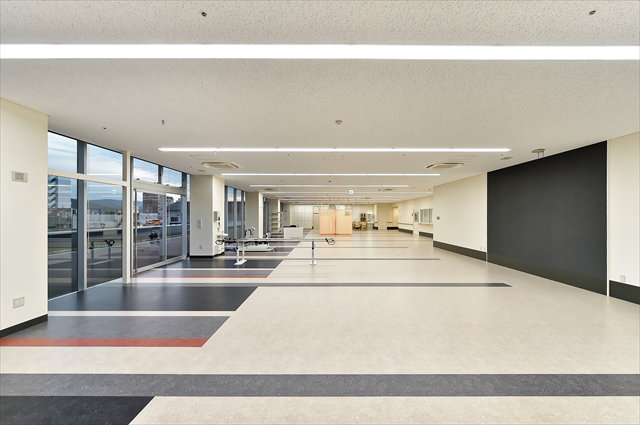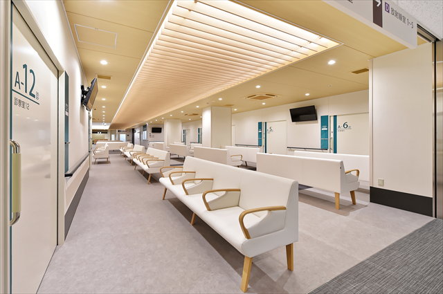 照明はすべてLEDにて計画すると共に、共用廊下や病室の照明制御システムの採用により計画的な省エネ化を図っている。ロビーや待合室には木製ルーバーと建築化照明の計画により暖かみのある印象の空間となっている。