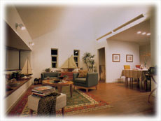 | その他・・・ 家具や室内のグリーンなどで間接光を工夫してみます。 ソファーの後部にライトを置いたり・・・ |