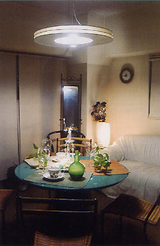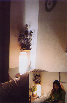 | 食卓のペンダント(調光できるものであればなお良い)やフロアースタンドとの組み合わせでひかりの束を作り「闇と明のグラデーション効果」を試みてみます。 | ![]() |